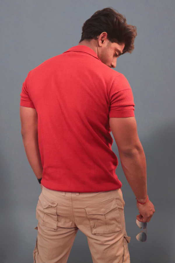 The rich red color is carefully chosen to make an impact while remaining versatile enough to pair with a variety of outfits. It adds energy and confidence to your look, making it an excellent choice for men who like their clothing to reflect personality and presence. Pair it with denim jeans for a laid-back vibe, chinos for smart-casual appeal, or layer it under a jacket for a more polished ensemble.